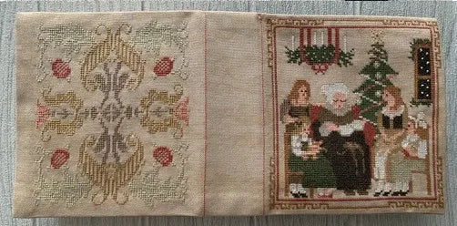 This cross stitch pattern from Twin Peaks Primitives includes a grandma sat amongst her grandchildren for story time. This design includes three patterns, the needle case outside, inside, and bookmark. Some additional required materials are iron-on interlining, tassel, fiber for pincushion, and red thick felt. The example uses DMC thread.