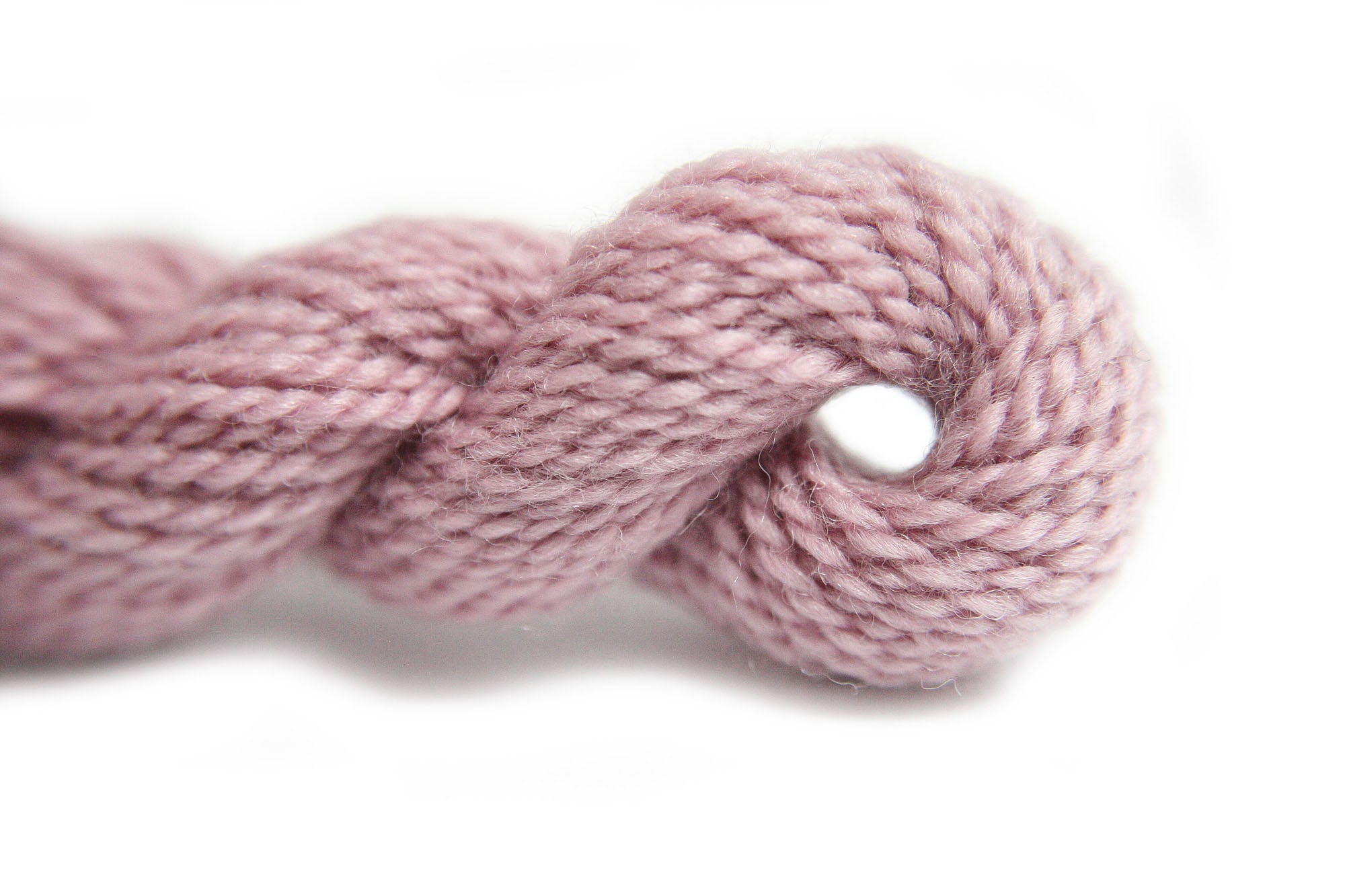 This is Merino from Vineyard in color 1002 Bridal Rose. 1 ply on 13 and 18 mesh. Great for belts or other wearables that need to be sturdy.