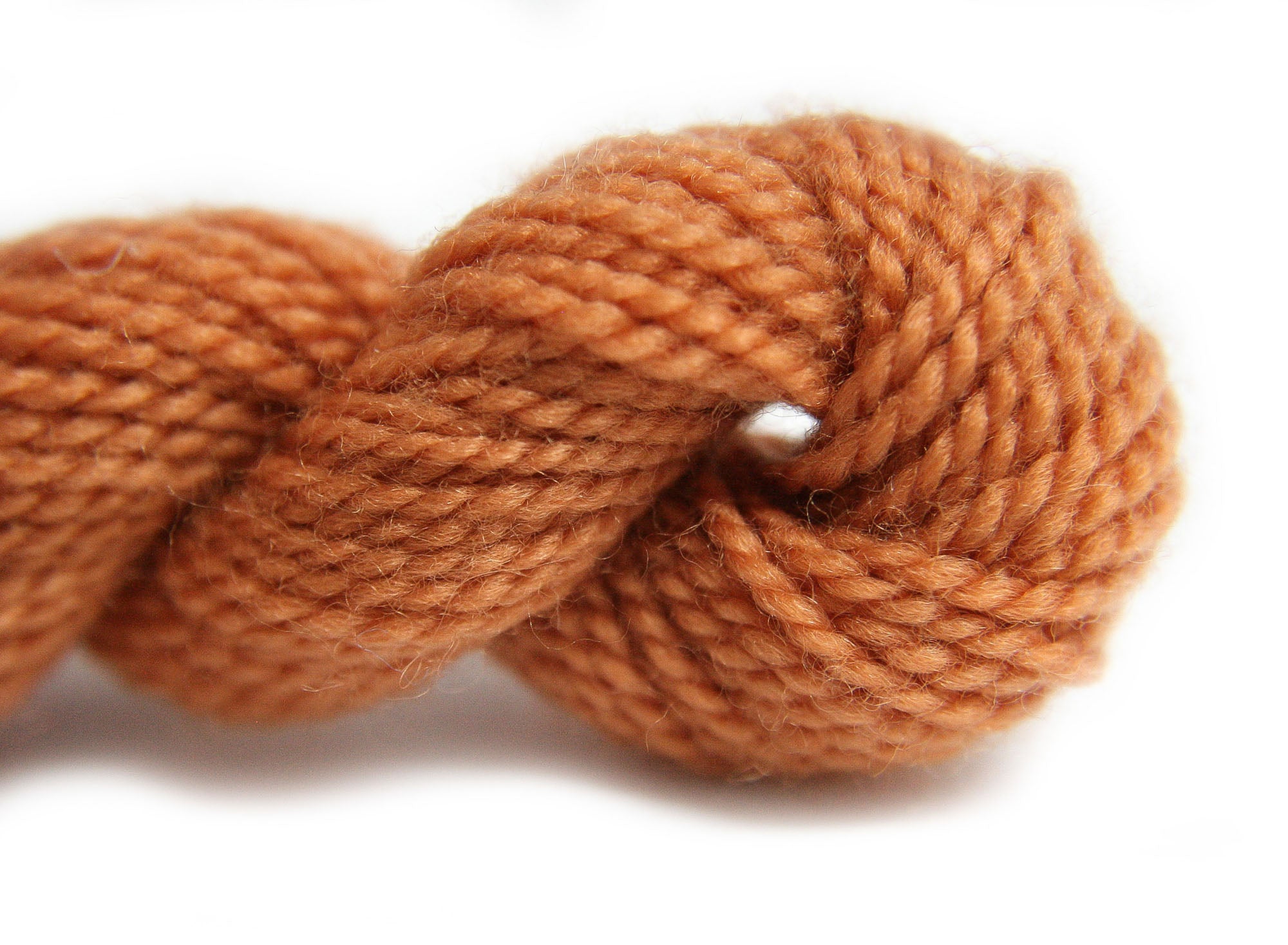 This is Merino from Vineyard in color 1027 Russet Orange. 1 ply on 13 and 18 mesh. Great for belts or other wearables that need to be sturdy.