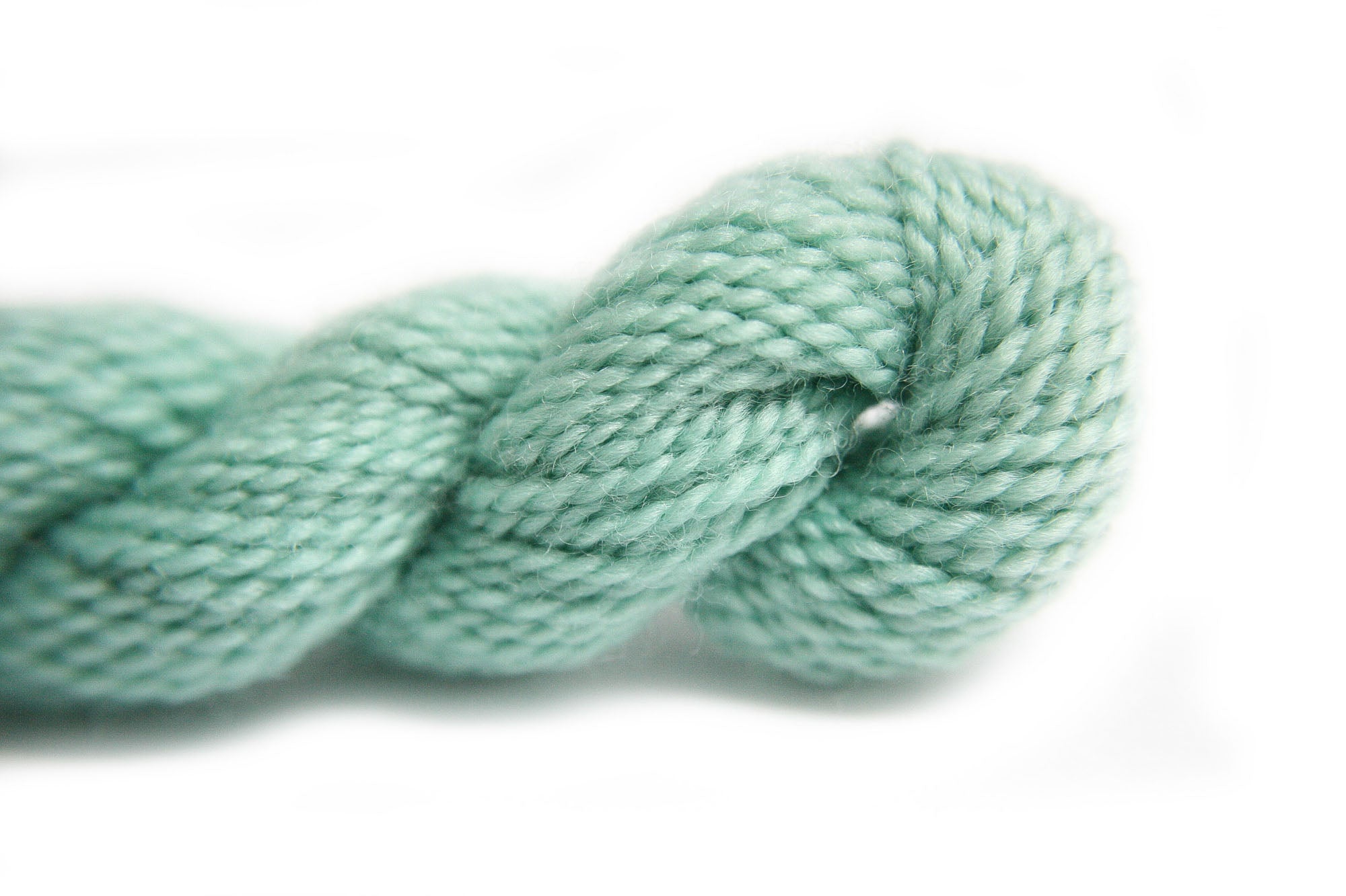 This is Merino from Vineyard in color 1078 Seafoam. 1 ply on 13 and 18 mesh. Great for belts or other wearables that need to be sturdy.
