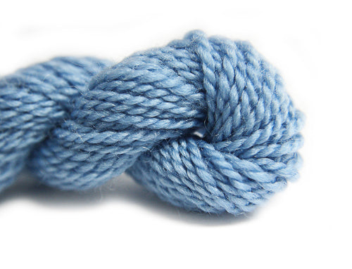This is Merino from Vineyard in color 1085 Sky. 1 ply on 13 and 18 mesh. Great for belts or other wearables that need to be sturdy.