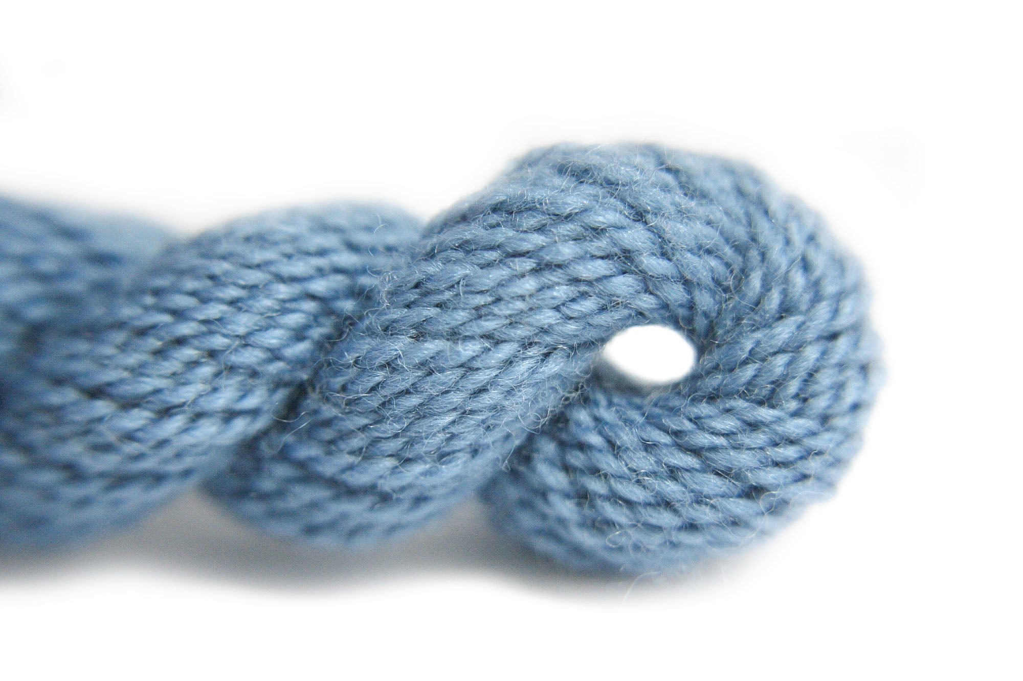 This is Merino from Vineyard in color 1157 Horizon. 1 ply on 13 and 18 mesh. Great for belts or other wearables that need to be sturdy.