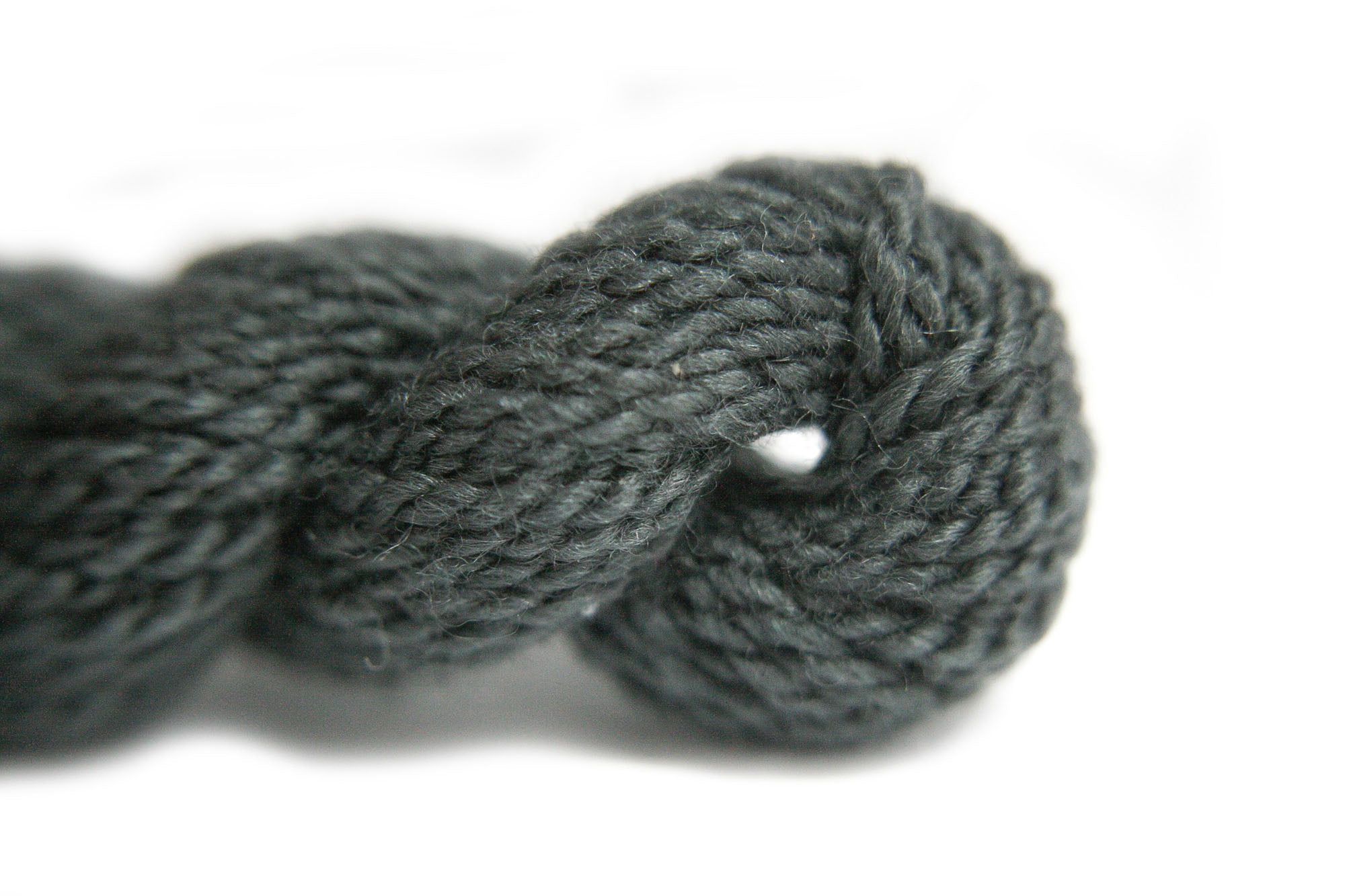 This is Merino from Vineyard in color 1161 Caviar. 1 ply on 13 and 18 mesh. Great for belts or other wearables that need to be sturdy.