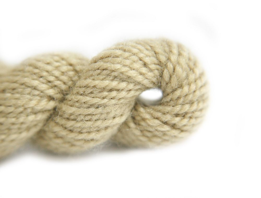 This is Merino from Vineyard in color 1170 Oak Bluff. 1 ply on 13 and 18 mesh. Great for belts or other wearables that need to be sturdy.