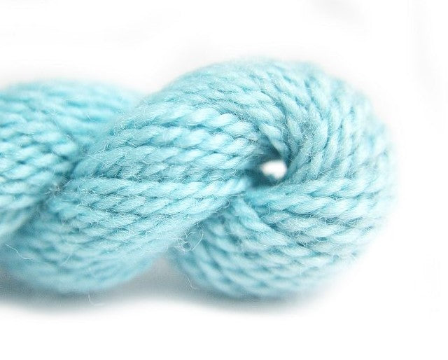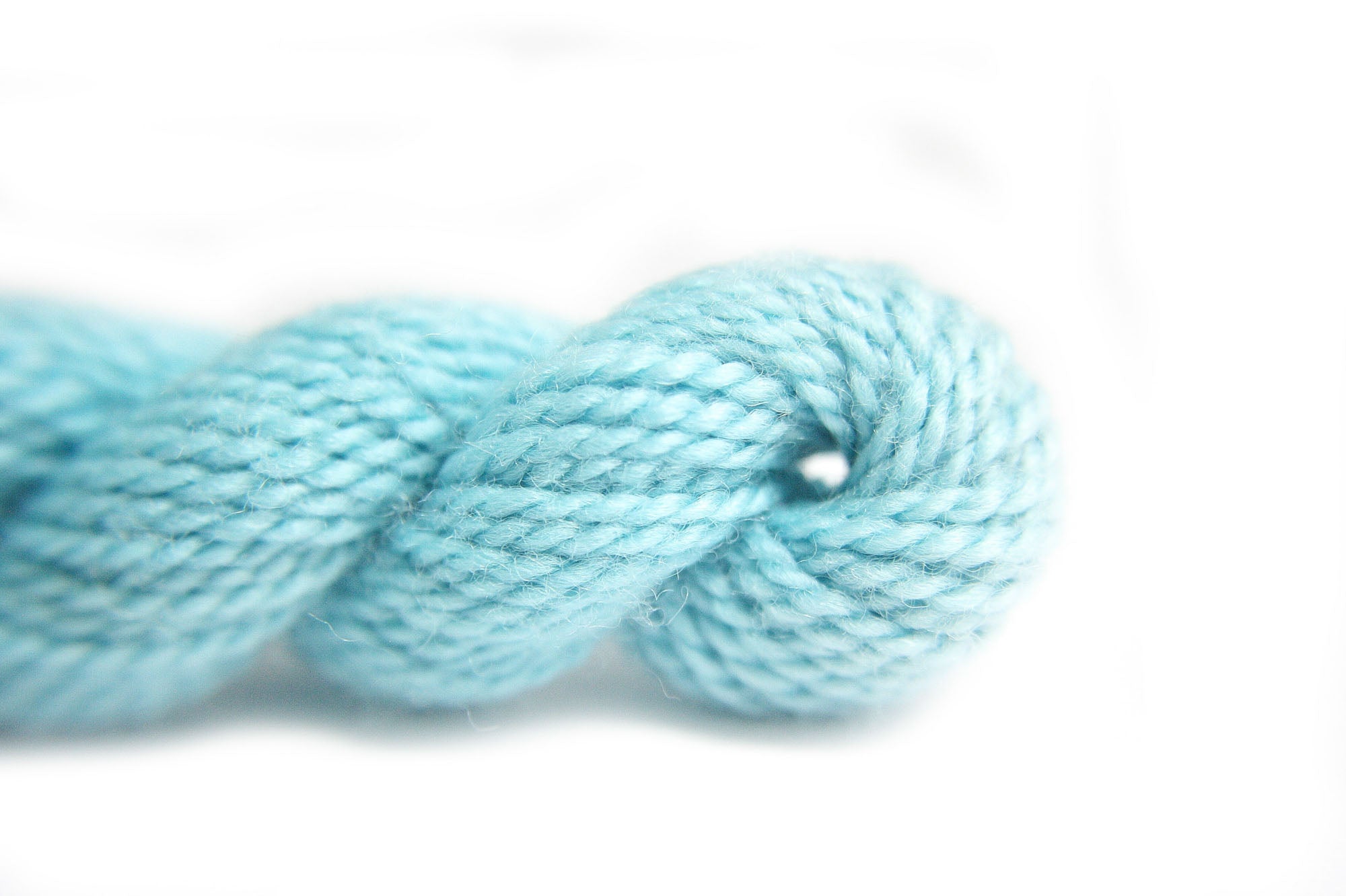 This is Merino from Vineyard in color 1222 South Beach. 1 ply on 13 and 18 mesh. Great for belts or other wearables that need to be sturdy.