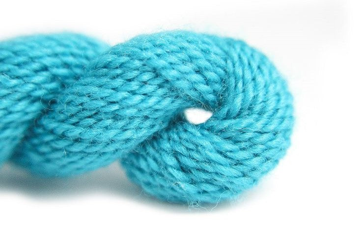 This is Merino from Vineyard in color 1224 Laguna Beach. 1 ply on 13 and 18 mesh. Great for belts or other wearables that need to be sturdy.