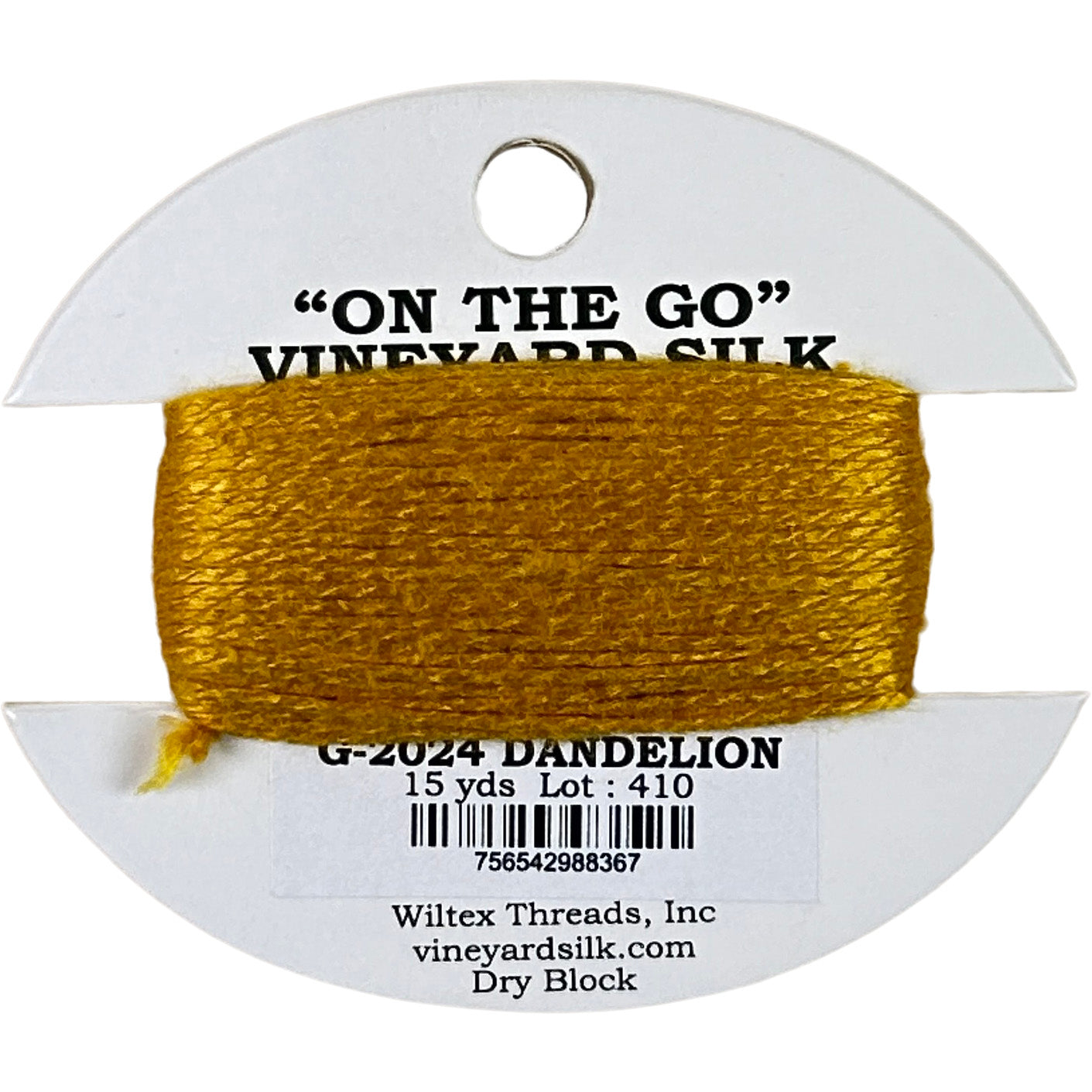 This is Silk Classic On The Go from Vineyard in color 2024 Dandelion. Soft, vibrant silks perfect for 18 mesh.1 ply on 18 mesh.