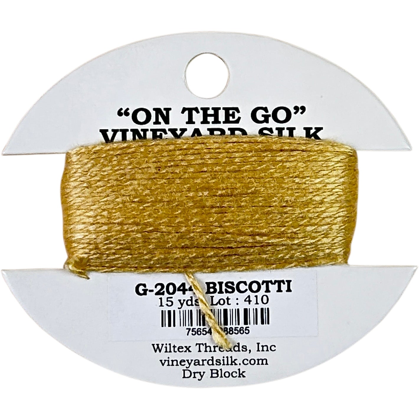 This is Silk Classic On The Go from Vineyard in color 2044 Biscotti. Soft, vibrant silks perfect for 18 mesh.1 ply on 18 mesh.
