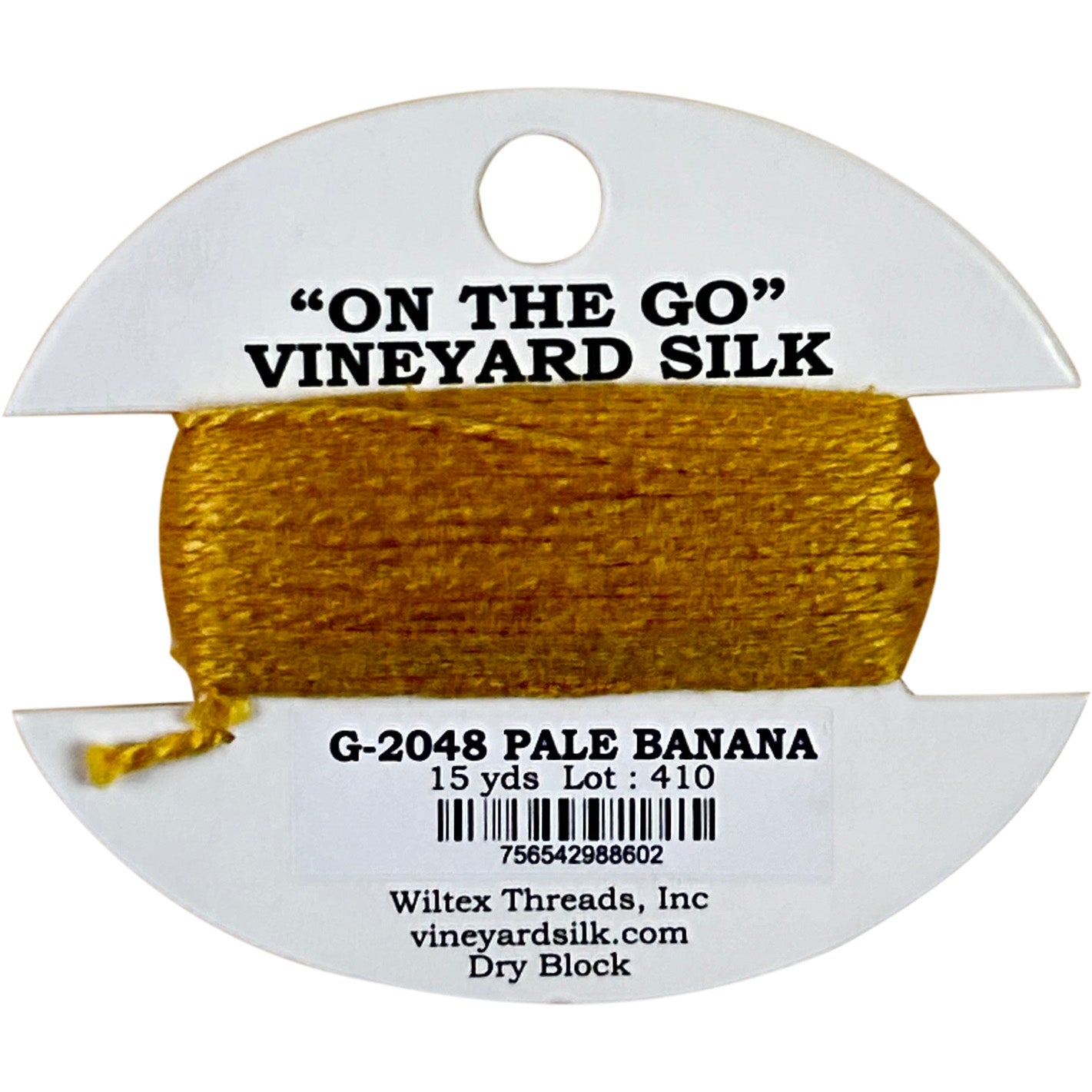 This is Silk Classic On The Go from Vineyard in color 2048 Pale Banana. Soft, vibrant silks perfect for 18 mesh.1 ply on 18 mesh.
