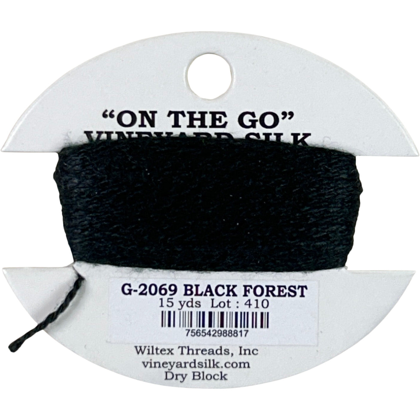 This is Silk Classic On The Go from Vineyard in color 2069 Black Forest. Soft, vibrant silks perfect for 18 mesh.1 ply on 18 mesh.