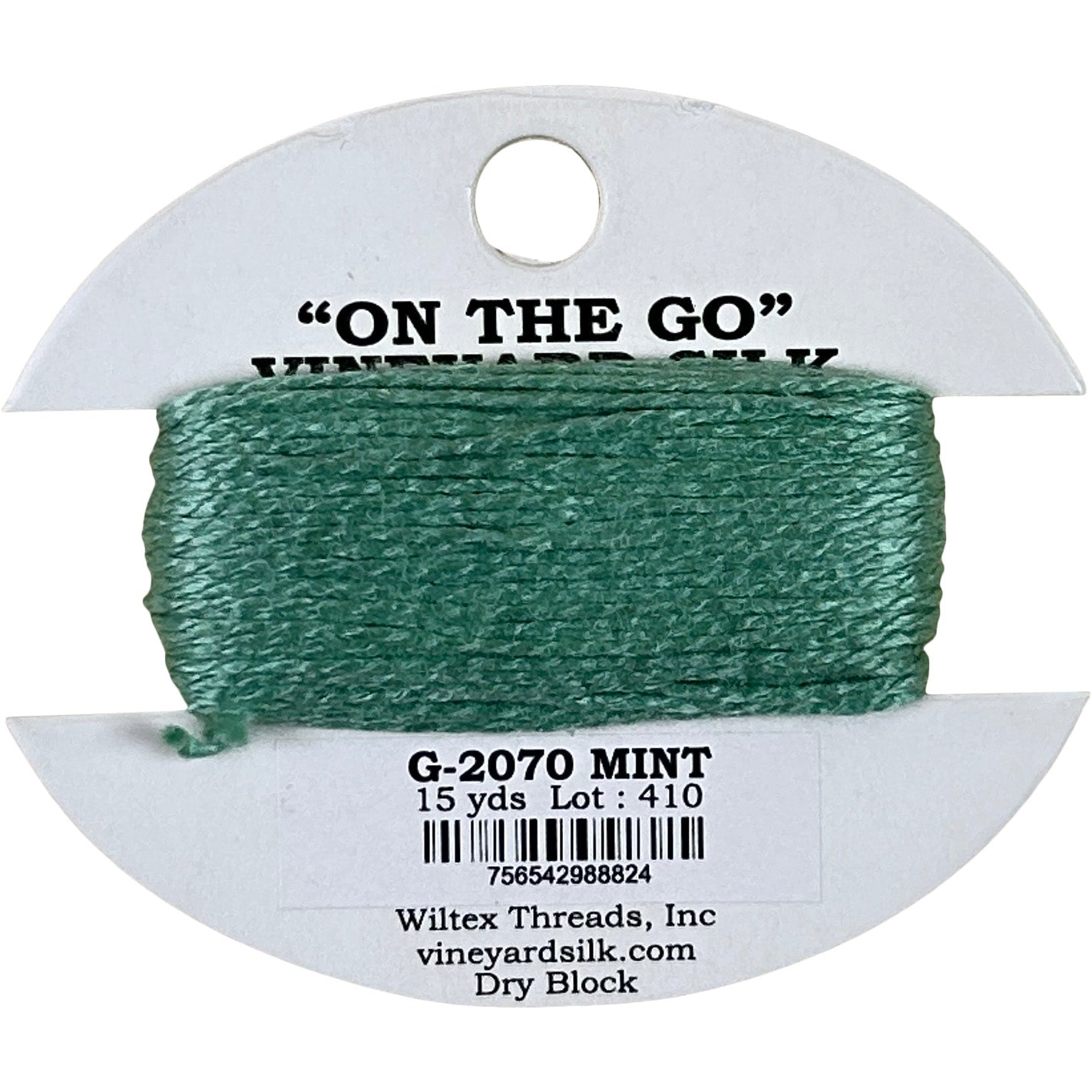 This is Silk Classic On The Go from Vineyard in color 2070 Mint. Soft, vibrant silks perfect for 18 mesh.1 ply on 18 mesh.