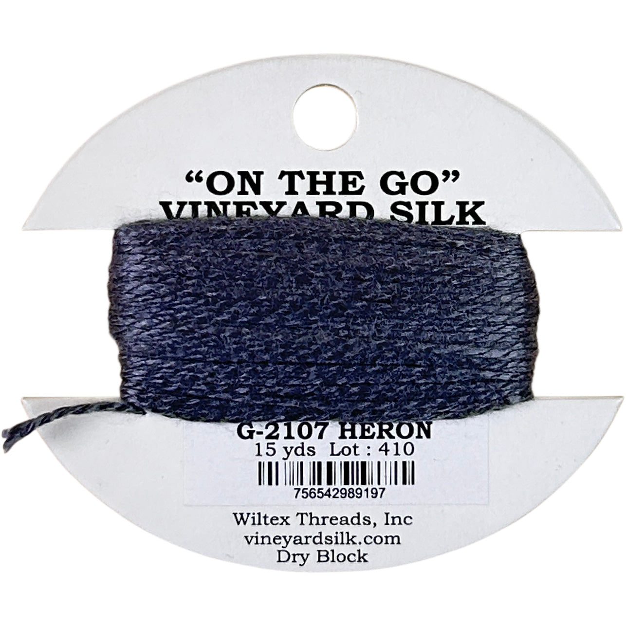 This is Silk Classic On The Go from Vineyard in color 2107 Heron. Soft, vibrant silks perfect for 18 mesh.1 ply on 18 mesh.