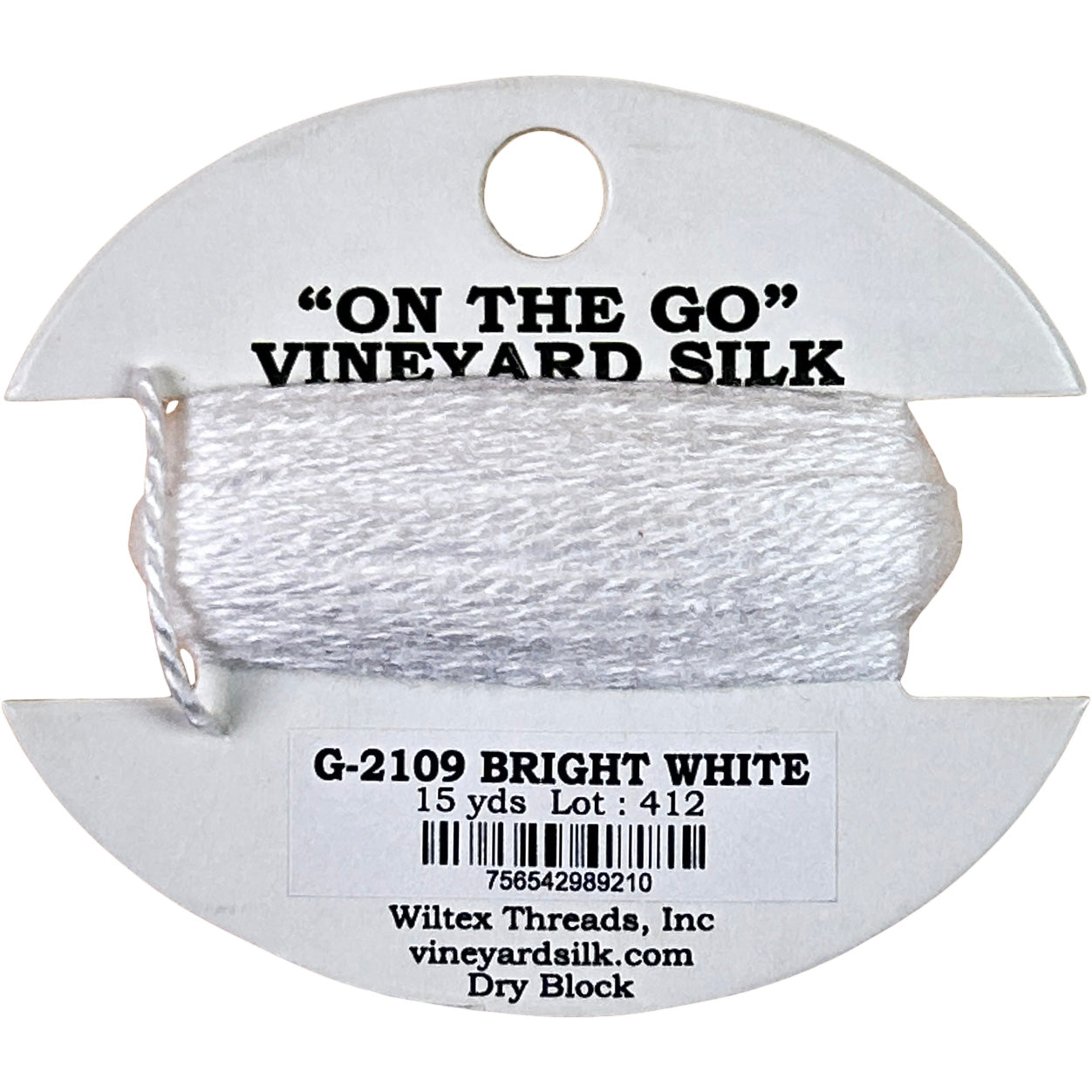 This is Silk Classic On The Go from Vineyard in color 2109 Bright White. Soft, vibrant silks perfect for 18 mesh.1 ply on 18 mesh.
