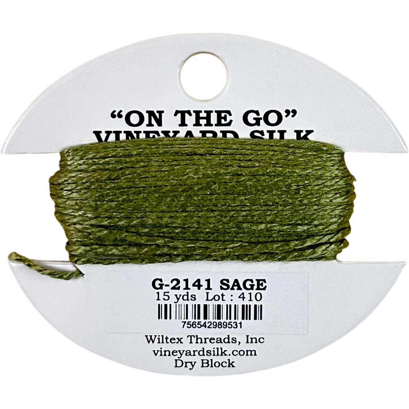 This is Silk Classic On The Go from Vineyard in color 2141 Sage. Soft, vibrant silks perfect for 18 mesh.1 ply on 18 mesh.
