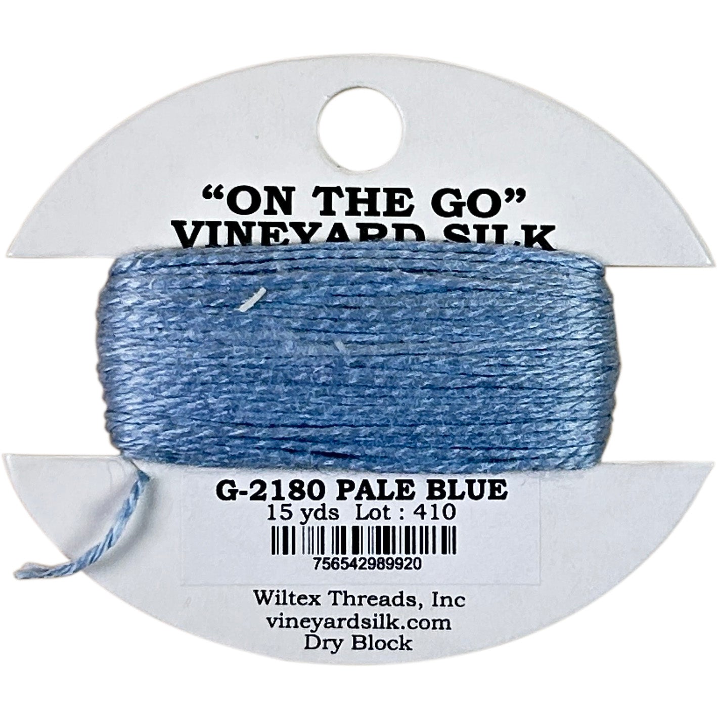 This is Silk Classic On The Go from Vineyard in color 2180 Pale Blue. Soft, vibrant silks perfect for 18 mesh.1 ply on 18 mesh.