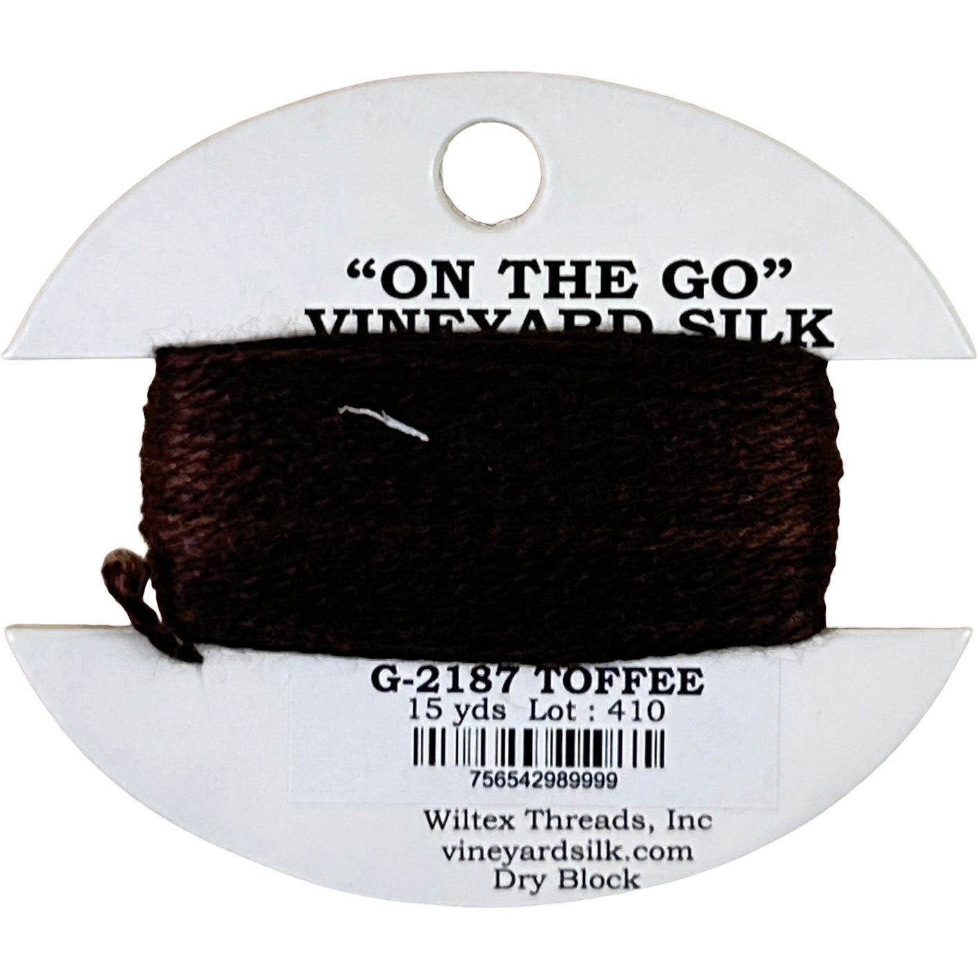 This is Silk Classic On The Go from Vineyard in color 2187 Toffee. Soft, vibrant silks perfect for 18 mesh.1 ply on 18 mesh.