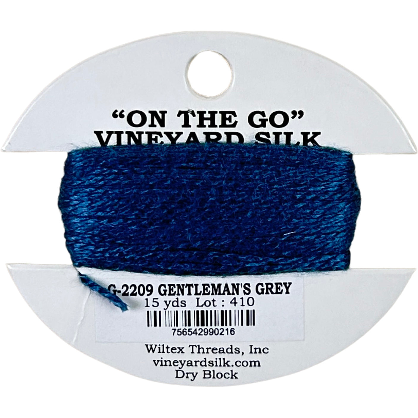 This is Silk Classic On The Go from Vineyard in color 2209 Gentleman's Grey. Soft, vibrant silks perfect for 18 mesh.1 ply on 18 mesh.