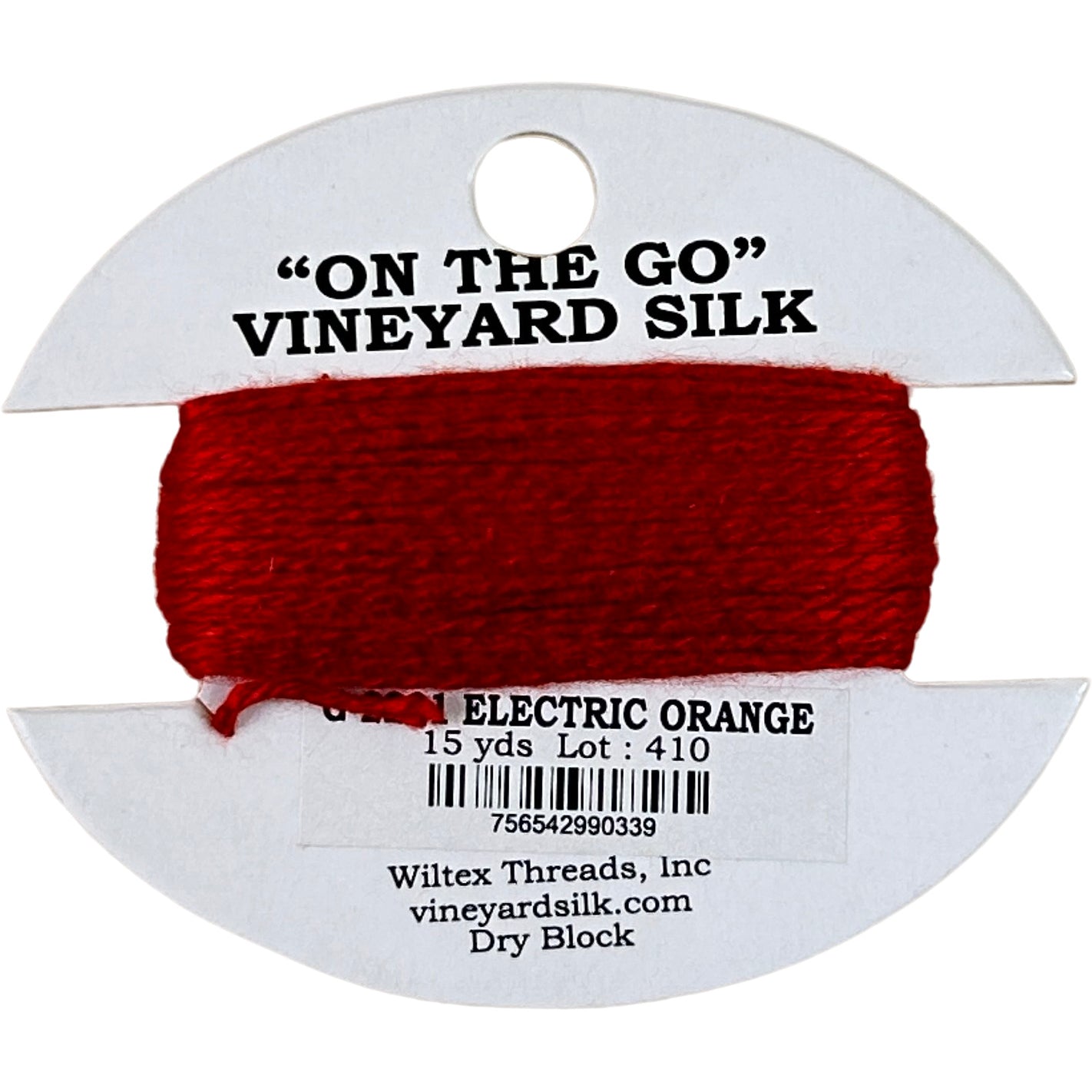 This is Silk Classic On The Go from Vineyard in color 2221 Electric Orange. Soft, vibrant silks perfect for 18 mesh.1 ply on 18 mesh.