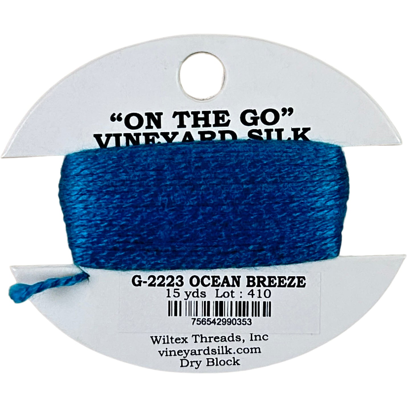 This is Silk Classic On The Go from Vineyard in color 2223 Ocean Breeze. Soft, vibrant silks perfect for 18 mesh.1 ply on 18 mesh.