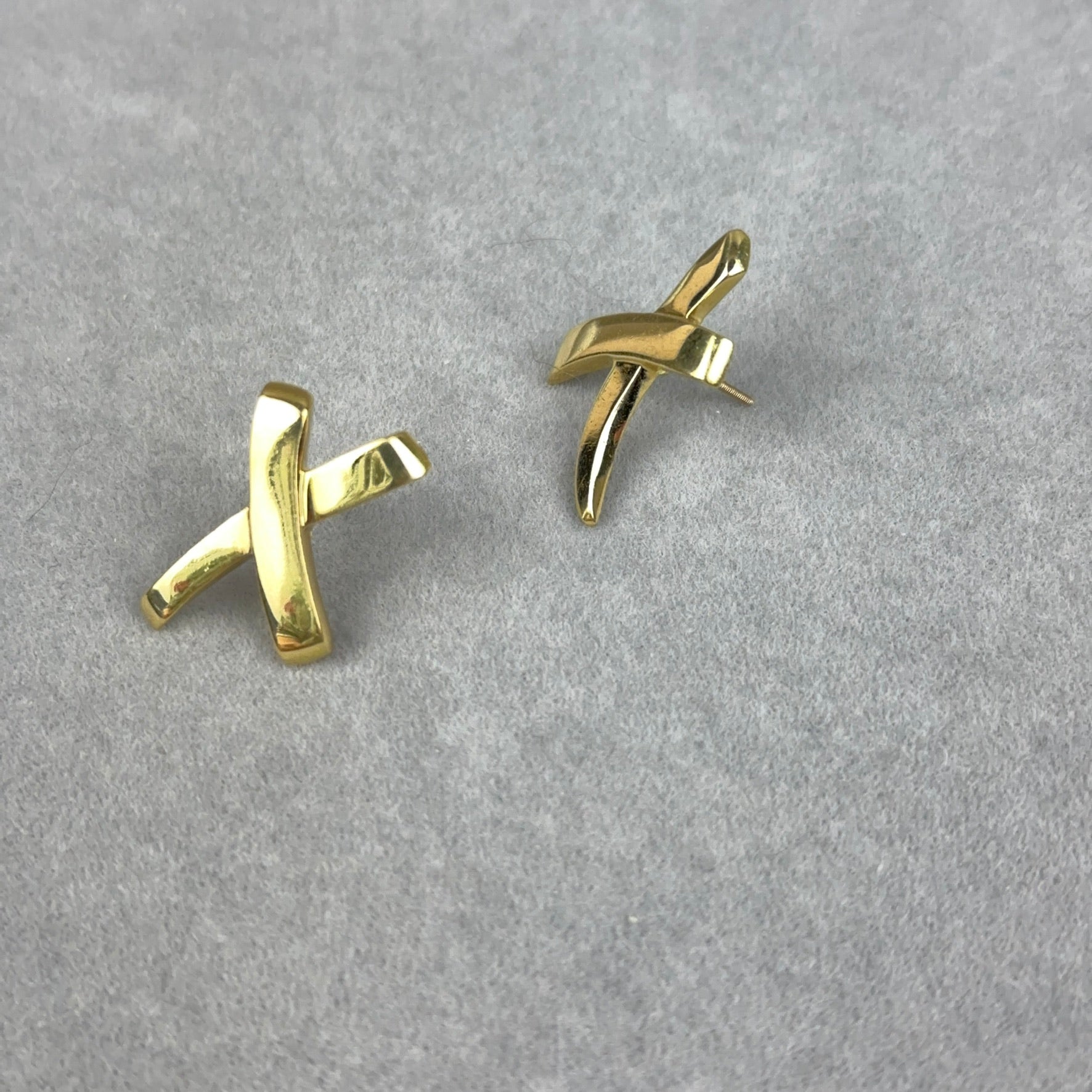 Dated 1984, theses signed Paloma Picasso for Tiffany & Co post earrings feature an "X" shape symbolizing a kiss in rich 18k gold.