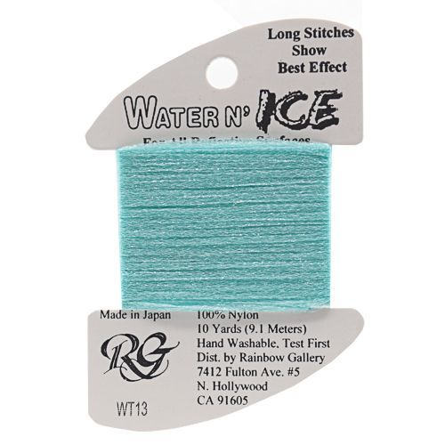 This is Water N Icefrom Rainbow Galleryin color 13 Aqua. Great for windows, ice, or other reflective surfaces. Use thread gloss or Fray Check to keep cut ends from fraying.