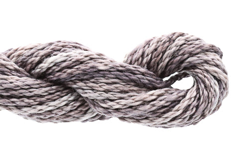 This is Watercolours from Caron Collection in color 299 Dense Fog. Rich variegated colors in stranded cotton. 2 strands on 13 mesh 1 strand on 18 mesh. 1 strand is about equivalent in size to #5 Perle Cotton.