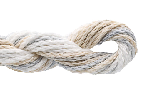 This is Watercolours from Caron Collection in color 312 Linen. Rich variegated colors in stranded cotton. 2 strands on 13 mesh 1 strand on 18 mesh. 1 strand is about equivalent in size to #5 Perle Cotton.