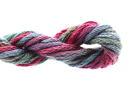 This is Waterlilies from Caron Collection in color 008 Nefertiti. Rich variegated colors in stranded silk. 6 strands on 13 mesh, 3 or 4 on 18 mesh.