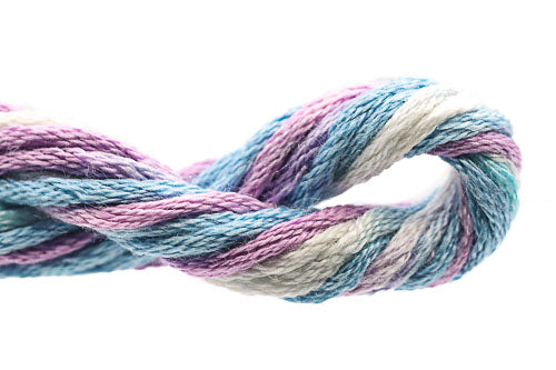 This is Waterlilies from Caron Collection in color 019 Tropic Seas. Rich variegated colors in stranded silk. 6 strands on 13 mesh, 3 or 4 on 18 mesh.