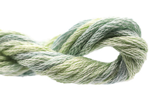 This is Waterlilies from Caron Collection in color 067 Celadon. Rich variegated colors in stranded silk. 6 strands on 13 mesh, 3 or 4 on 18 mesh.