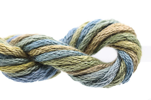 This is Waterlilies from Caron Collection in color 085 Antique Brass. Rich variegated colors in stranded silk. 6 strands on 13 mesh, 3 or 4 on 18 mesh.