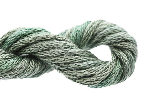 This is Waterlilies from Caron Collection in color 106 Olive. Rich variegated colors in stranded silk. 6 strands on 13 mesh, 3 or 4 on 18 mesh.