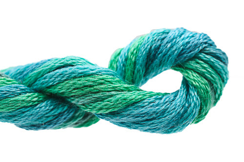 This is Waterlilies from Caron Collection in color 207 Bermuda Reef. Rich variegated colors in stranded silk. 6 strands on 13 mesh, 3 or 4 on 18 mesh.