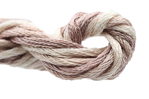 This is Waterlilies from Caron Collection in color 224 Tiramisu. Rich variegated colors in stranded silk. 6 strands on 13 mesh, 3 or 4 on 18 mesh.