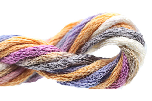 This is Waterlilies from Caron Collection in color 239 Wheat Fields. Rich variegated colors in stranded silk. 6 strands on 13 mesh, 3 or 4 on 18 mesh.