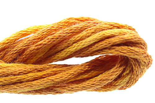 This is Waterlilies from Caron Collection in color 280 Calabasa. Rich variegated colors in stranded silk. 6 strands on 13 mesh, 3 or 4 on 18 mesh.