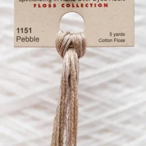 This is Overdyed Floss from Weeks Dye Works in color 1151 Pebble. Variegated threads in a wide range of shades, perfect for embroidery, needlepoint, and cross stitch. Use all 6 strands on 13 mesh, 3 or 4 strands on 18 mesh.