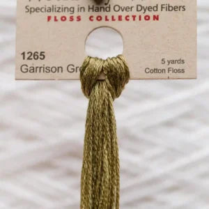 This is Overdyed Floss from Weeks Dye Works in color 1265 Garrison Green. Variegated threads in a wide range of shades, perfect for embroidery, needlepoint, and cross stitch. Use all 6 strands on 13 mesh, 3 or 4 strands on 18 mesh.