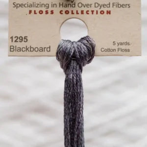 This is Overdyed Floss from Weeks Dye Works in color 1295 Blackboard. Variegated threads in a wide range of shades, perfect for embroidery, needlepoint, and cross stitch. Use all 6 strands on 13 mesh, 3 or 4 strands on 18 mesh.