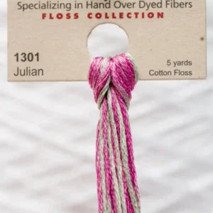 This is Overdyed Floss from Weeks Dye Works in color 1301 Julian. Variegated threads in a wide range of shades, perfect for embroidery, needlepoint, and cross stitch. Use all 6 strands on 13 mesh, 3 or 4 strands on 18 mesh.