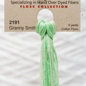 This is Overdyed Floss from Weeks Dye Works in color 2191 Granny Smith. Variegated threads in a wide range of shades, perfect for embroidery, needlepoint, and cross stitch. Use all 6 strands on 13 mesh, 3 or 4 strands on 18 mesh.