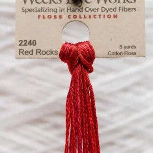 This is Overdyed Floss from Weeks Dye Works in color 2240 Red Rocks. Variegated threads in a wide range of shades, perfect for embroidery, needlepoint, and cross stitch. Use all 6 strands on 13 mesh, 3 or 4 strands on 18 mesh.