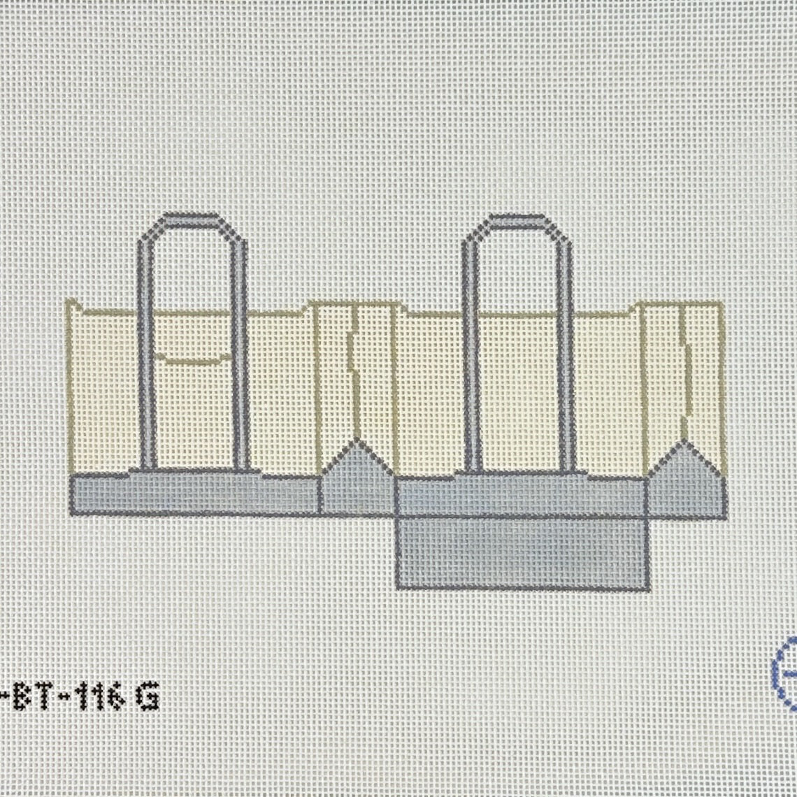 From Wheelhaus Needlepoint, this hand painted needlepoint canvas features a classic boat tote. The design can be finished into a 3D mini tote. It is painted in gray so that you can easily color swap it to any color you want.