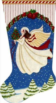 A beautiful hand painted needlepoint canvas from Melissa Shirley Designs. White Angel Christmas Stocking.