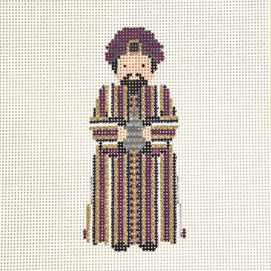 Painted Pony Designs Petei Nativity Wiseman in Purple and Gold Needlepoint Canvas