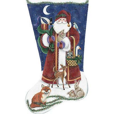 Rebecca Wood Designs Woodland Santa Stocking Needlepoint Canvas - 13M