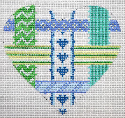 A beautiful hand painted needlepoint design from Kate Dickerson Needlepoint Collections. Bright Blues & Greens.