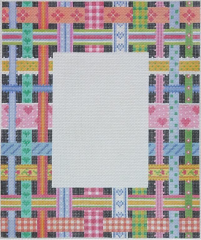 Kate Dickerson Needlepoint Collections Woven Ribbons Multi On Black Needlepoint Canvas