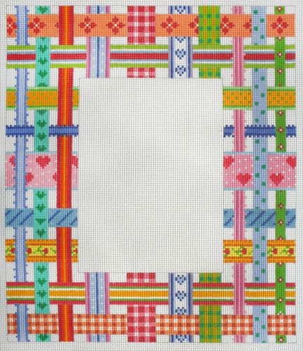 Kate Dickerson Needlepoint Collections Woven Picture Frame Ribbons Multi On White Needlepoint Canvas